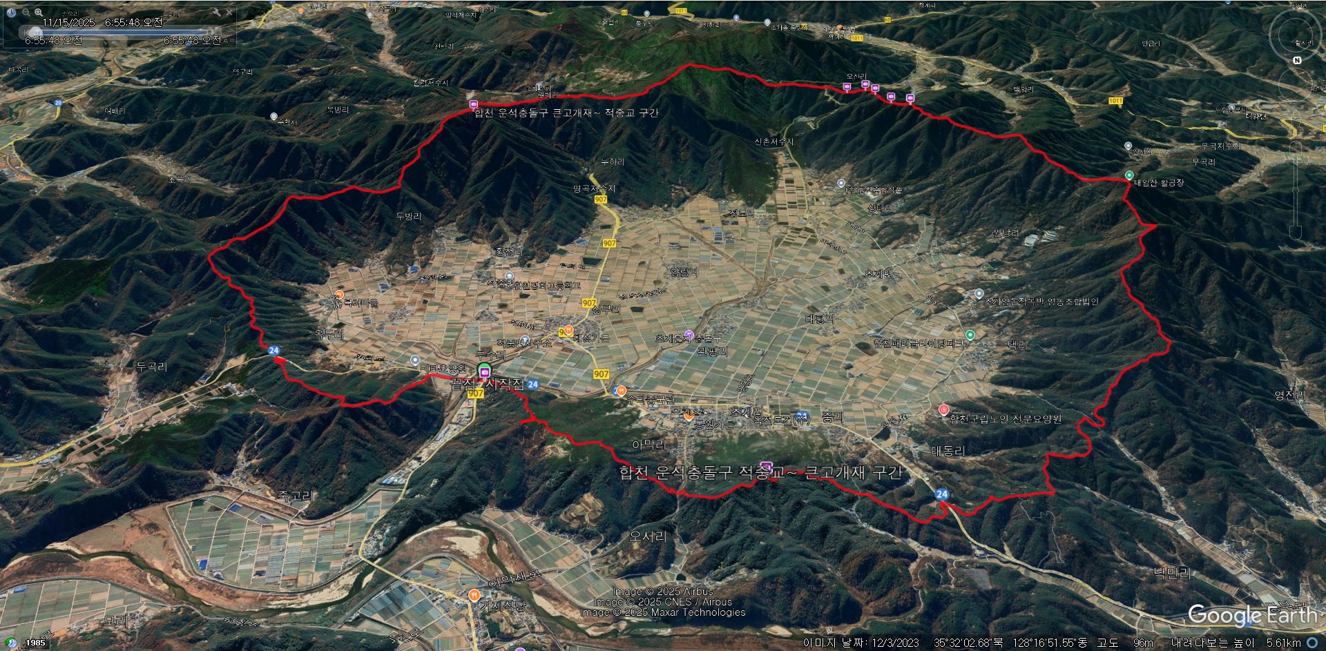합천 운석충돌구 큰고개재~ 적중교 구간