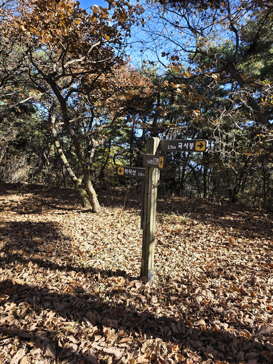2코스(큰고개재~미타산, 5.0Km), 국사봉 삼거리, 미타산 3.3km