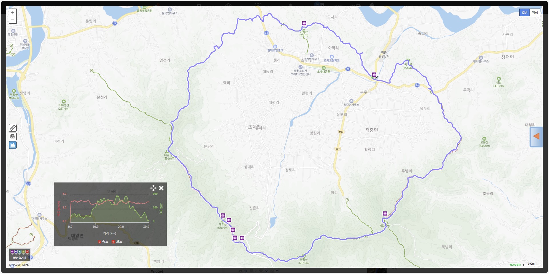☞ 클릭: 합천 운석충돌구 적중교~ 큰고개재 구간(https://www.ramblr.com/web/mymap/trip/439148/9649118/)
