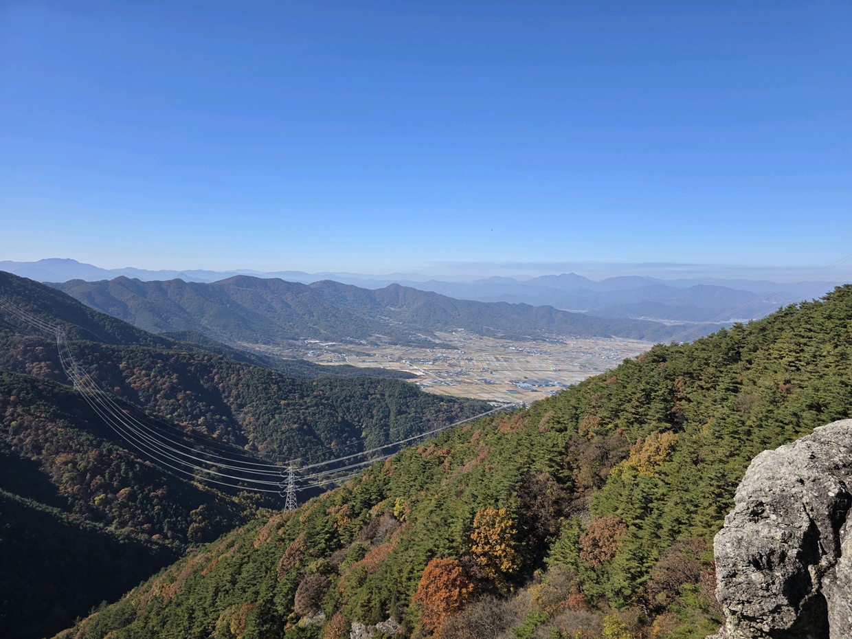 7코스(박골재~대암산, 3.6Km), 대암산 페러글라이딩 활공장에서 바라본 합천 운석출돌구 전경