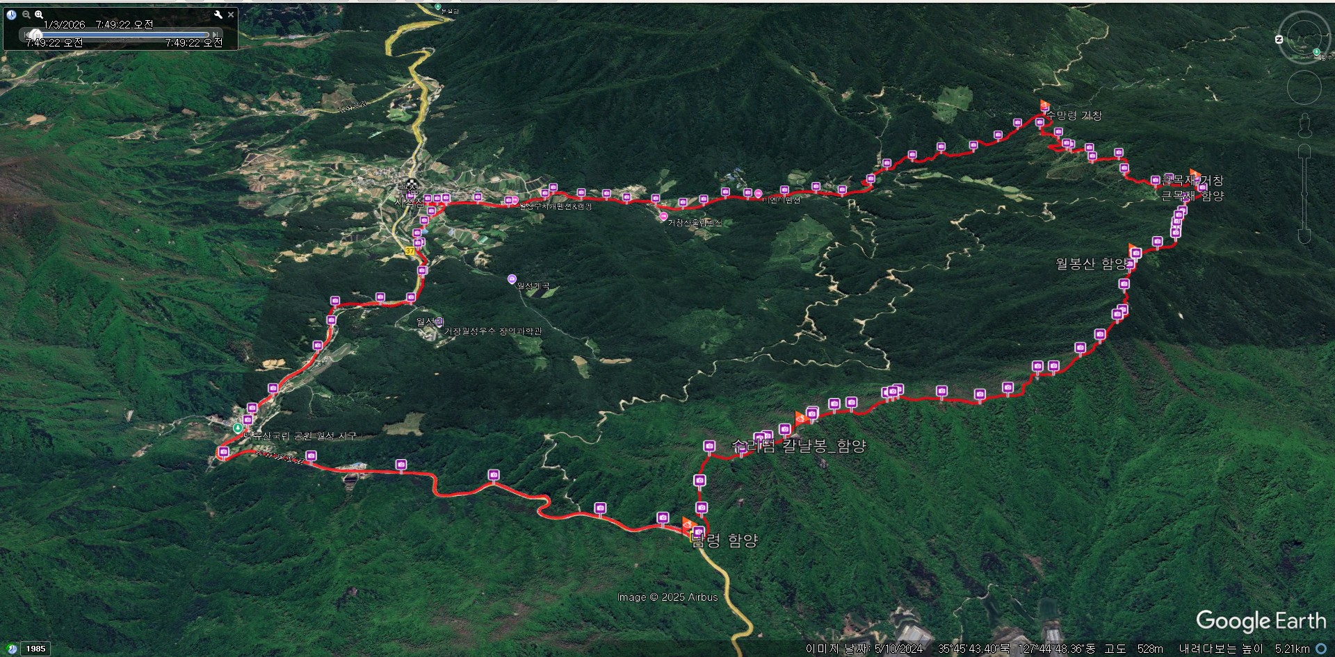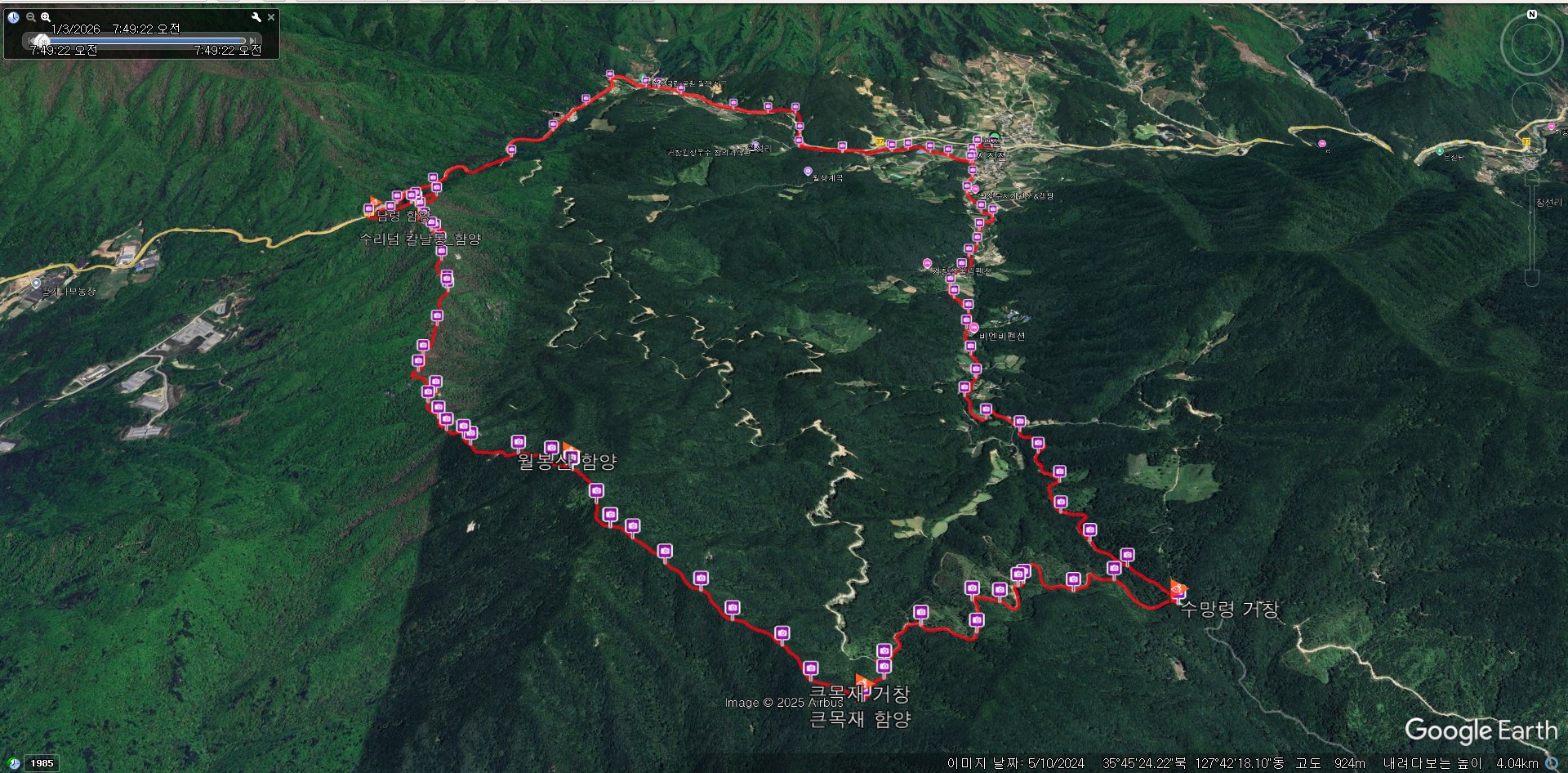 1. 언제: 2026.01.03 2. 누구와: 나홀로 3. 산행코스: 월성마을회관→ 내계폭포→ 포고장마을→ 수망령→ 임도→ 큰목재→ 월봉산→ 수리덤( 칼날봉)→ 남령→ 황점마을→ 서출동류물길→ 월성마을회관(18.4Km) 4. GPS 파일: