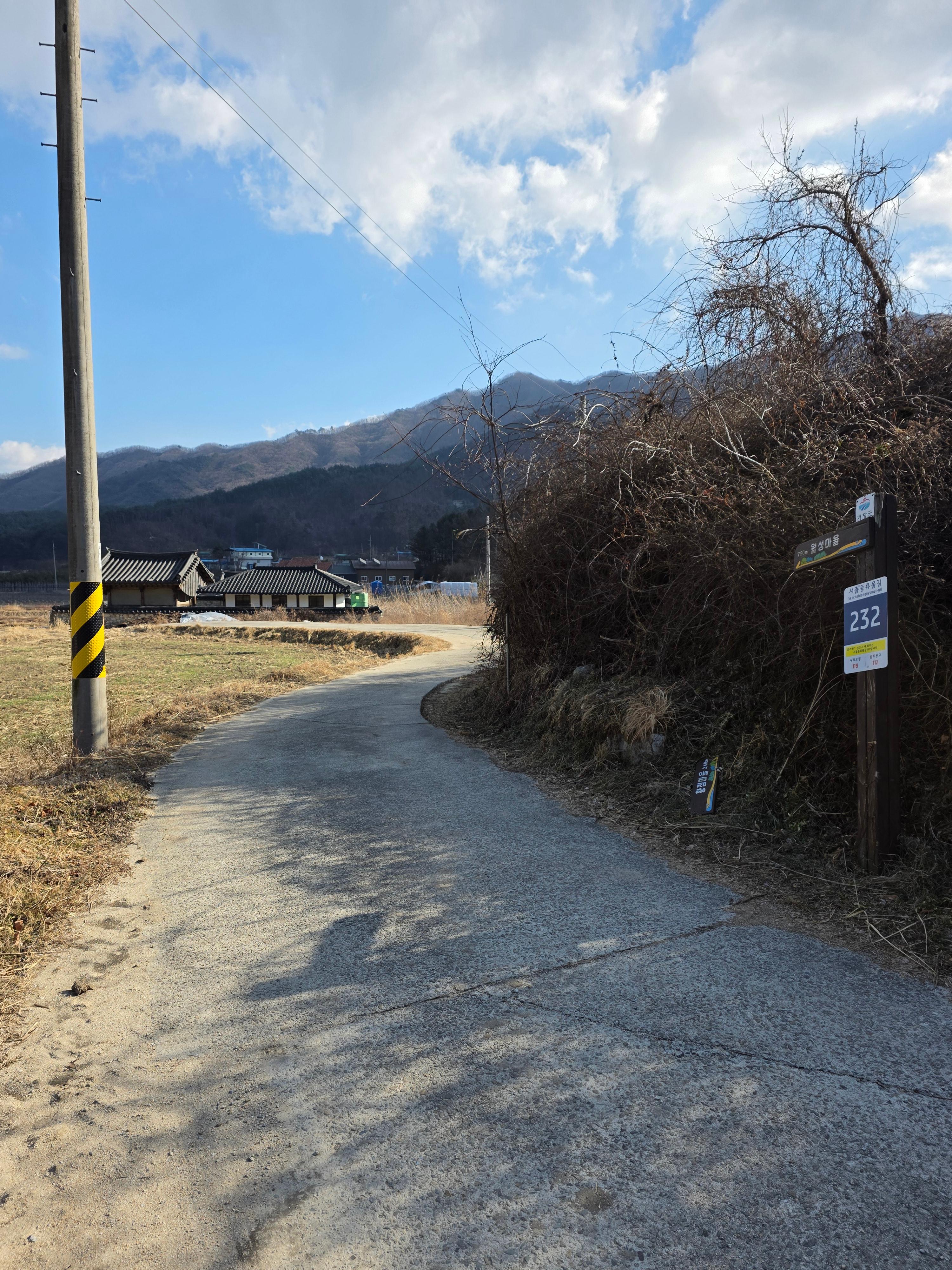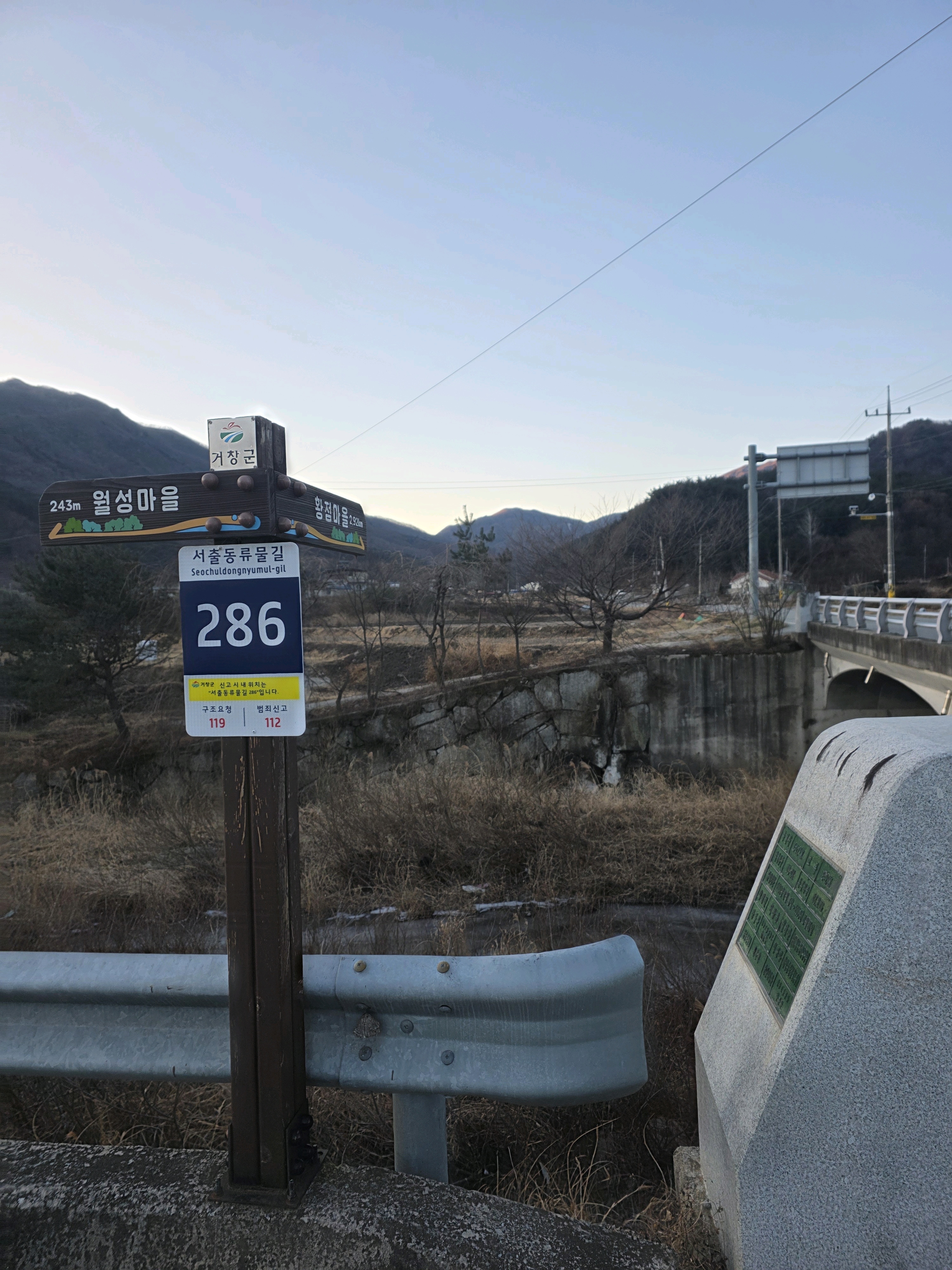 월성마을회관→ 수망령 등산로, 월성마을의 서출동류물길 이정표입니다.