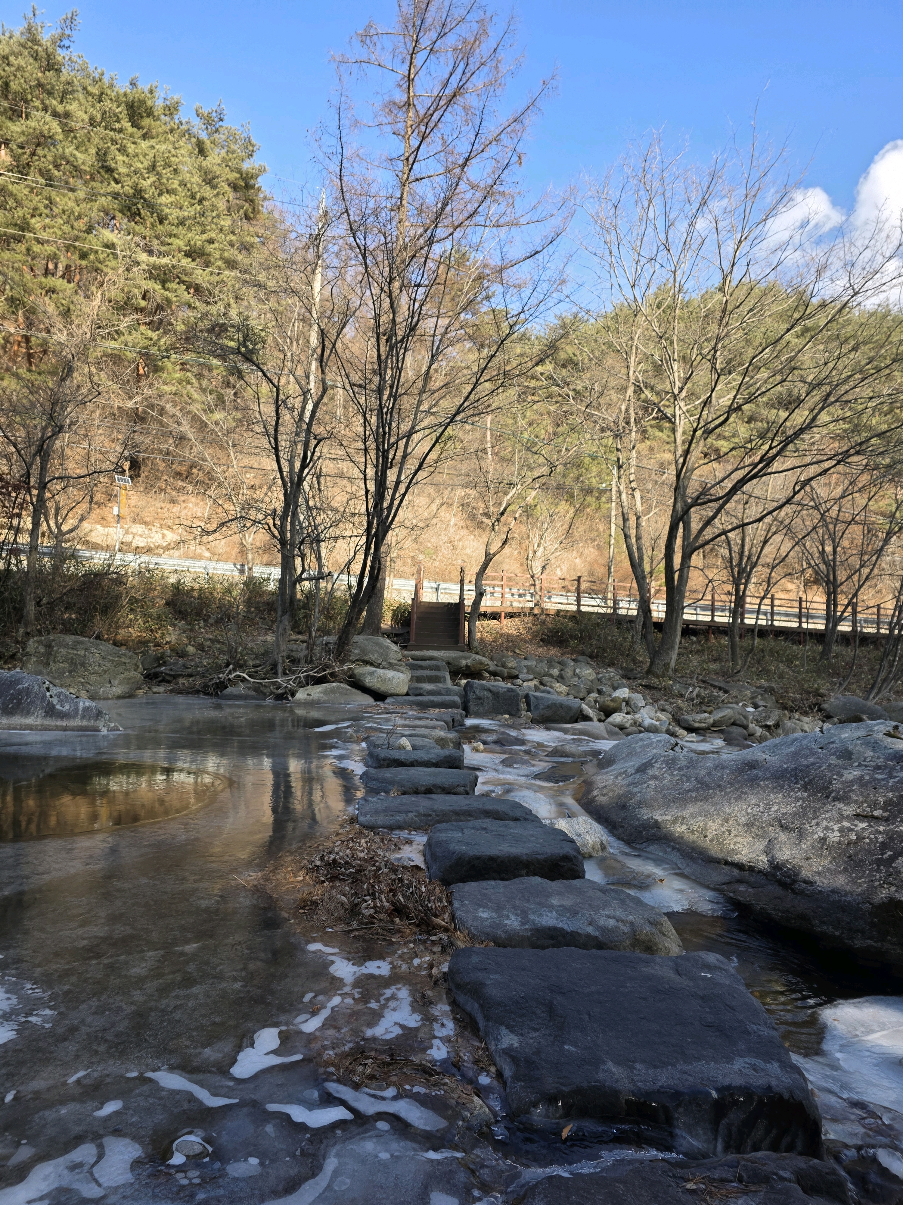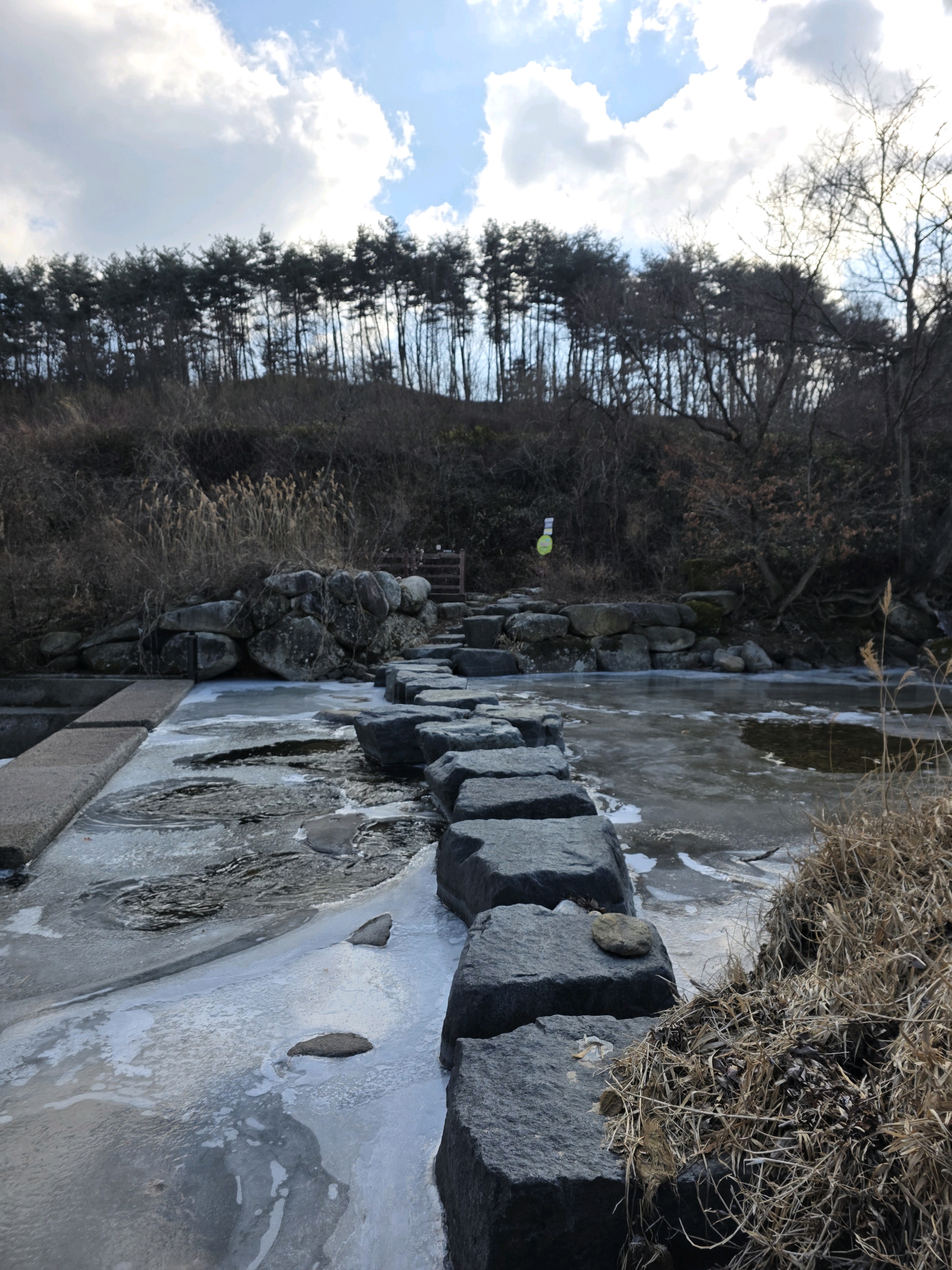 남령→ 월성마을(서출동류물길) 등산로, 징검다리도 건너 갑니다.