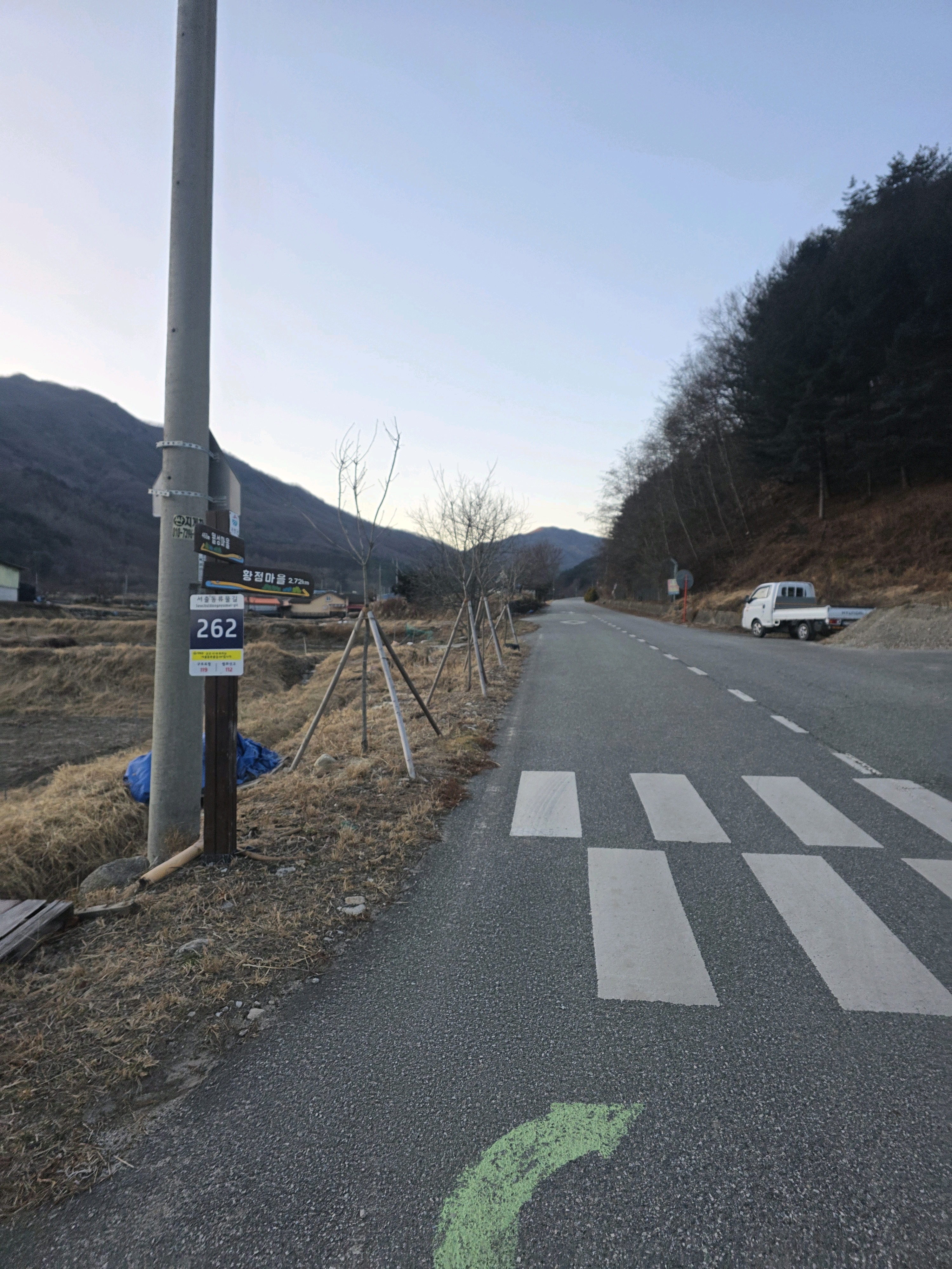 월성마을회관→ 수망령 등산로, 도로위을 녹색 화살표는 서출동류물길 안내용 입니다.