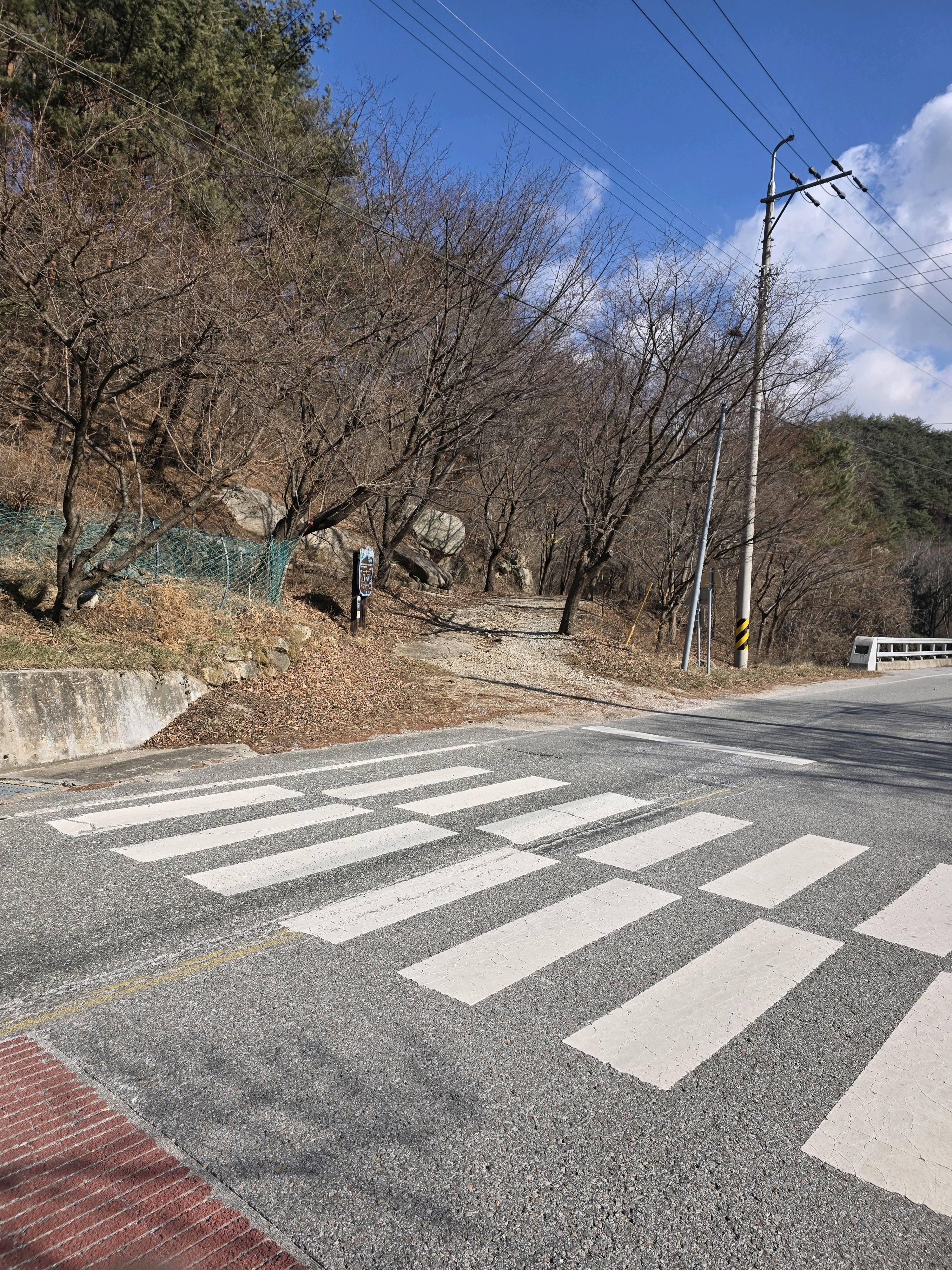남령→ 월성마을(서출동류물길) 등산로, 건널목을 건너 입도로 진입을 합니다.